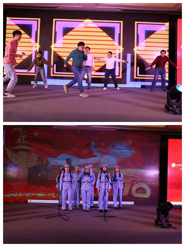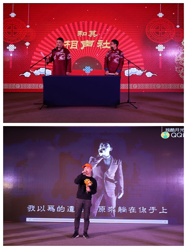 年会最后是大家精心准备的文艺演出部分,来自各个部门的伙伴们共同为大家呈现了一场视听盛宴,温情的大合唱、动感撩人的舞蹈、有趣的歌伴舞、富有创意的相声、幽默又不失感人的小品等,震撼着现场的每一位观众,让人目不暇接,够嗨!过瘾!