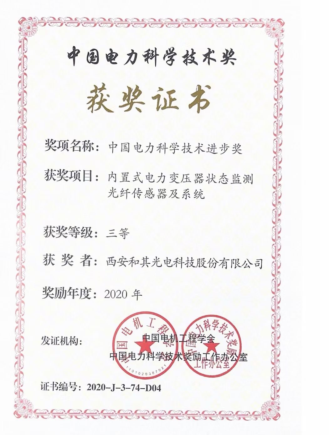 和其光电喜获中国电力科学技术奖