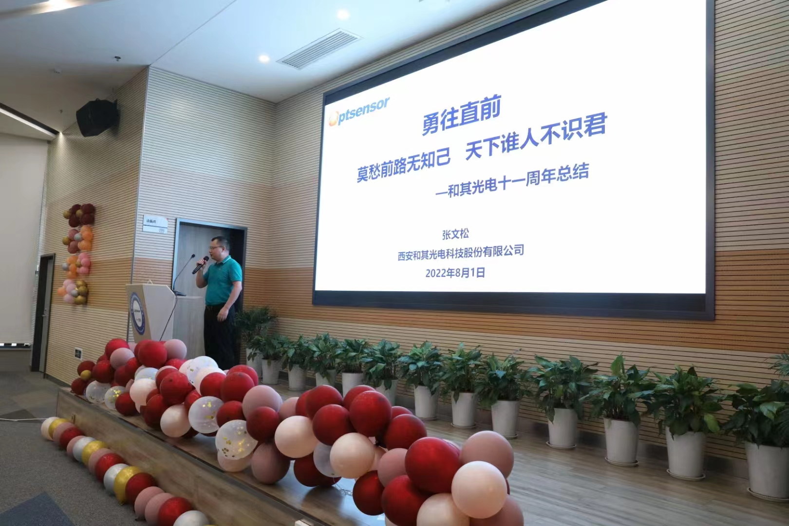 2022年8月1日下午,和其光电“勇往直前 再创辉煌”十一周年工作总结暨表彰会议在硬科技报告厅隆重举行。