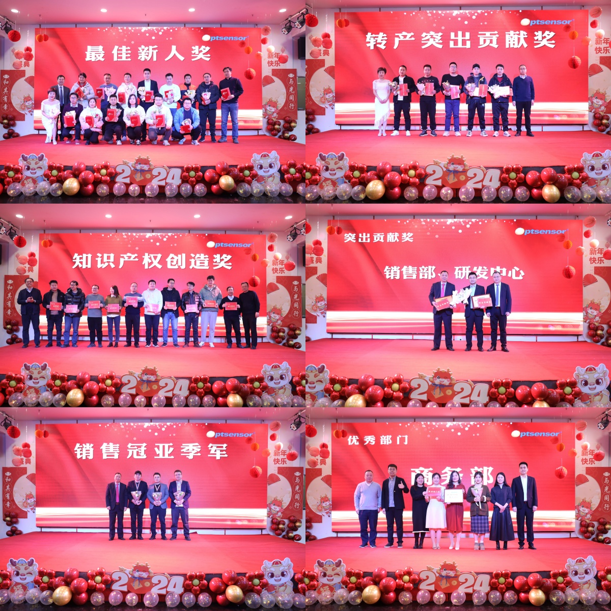 第三部分,公司领导为2023年度评优评先团队及个人颁发荣誉奖项。“千淘万漉虽辛苦,吹尽狂沙始到金。”过去的2023年,全体和其人用智慧和力量书写辉煌,用勤奋和热血创造奇迹,为和其光电创造了一个又一个佳绩。其中,涌现出一批优秀的团队和员工代表,他们敢想敢干,为实现公司业务持续发展注入新动力。