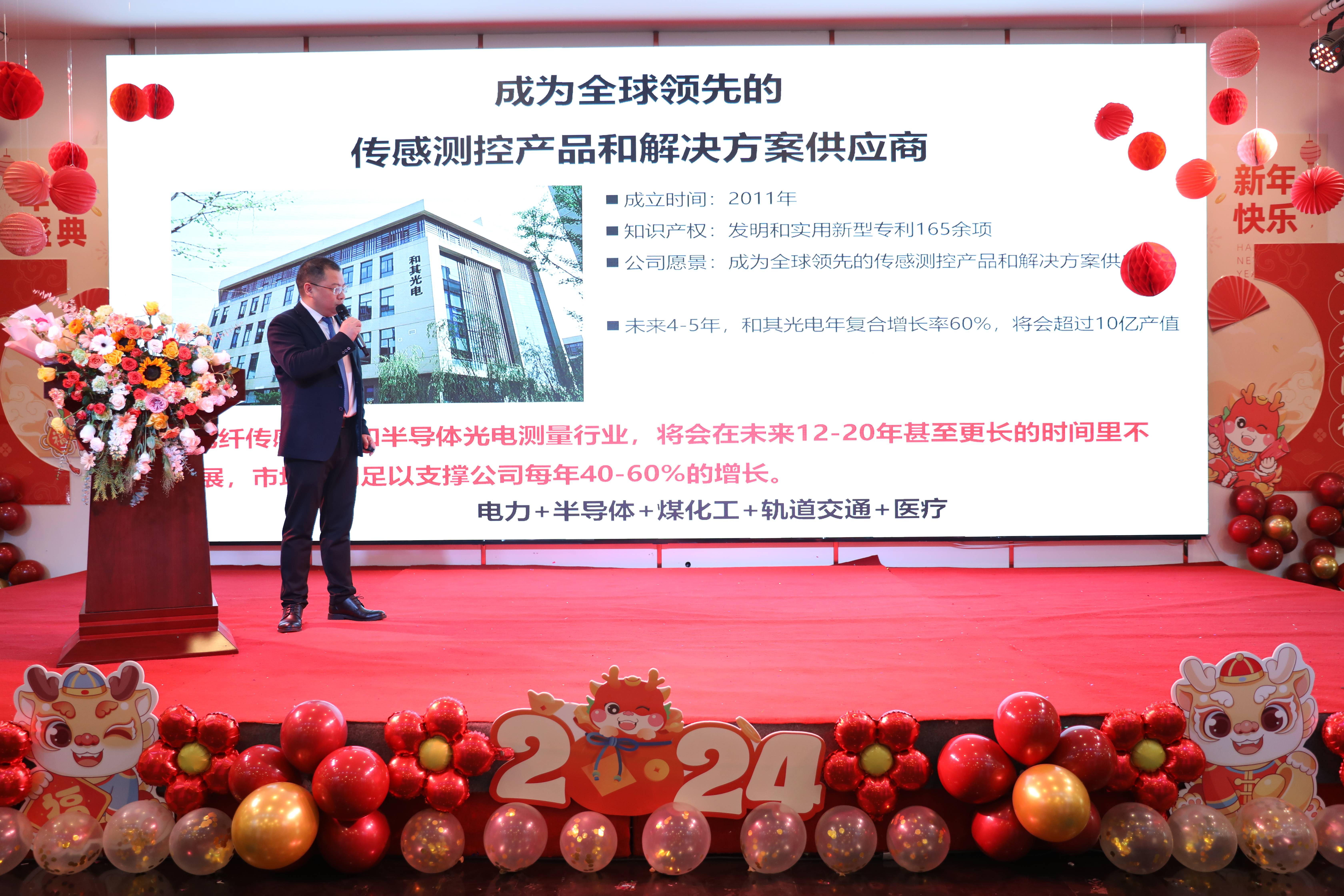 第一部分,公司总经理作《2023年度工作总结报告》。带领大家回顾了和其光电过去一年的发展,对所有并肩同行的伙伴表示感谢,同时表达了公司对全体员工的深切关怀和美好祝福。