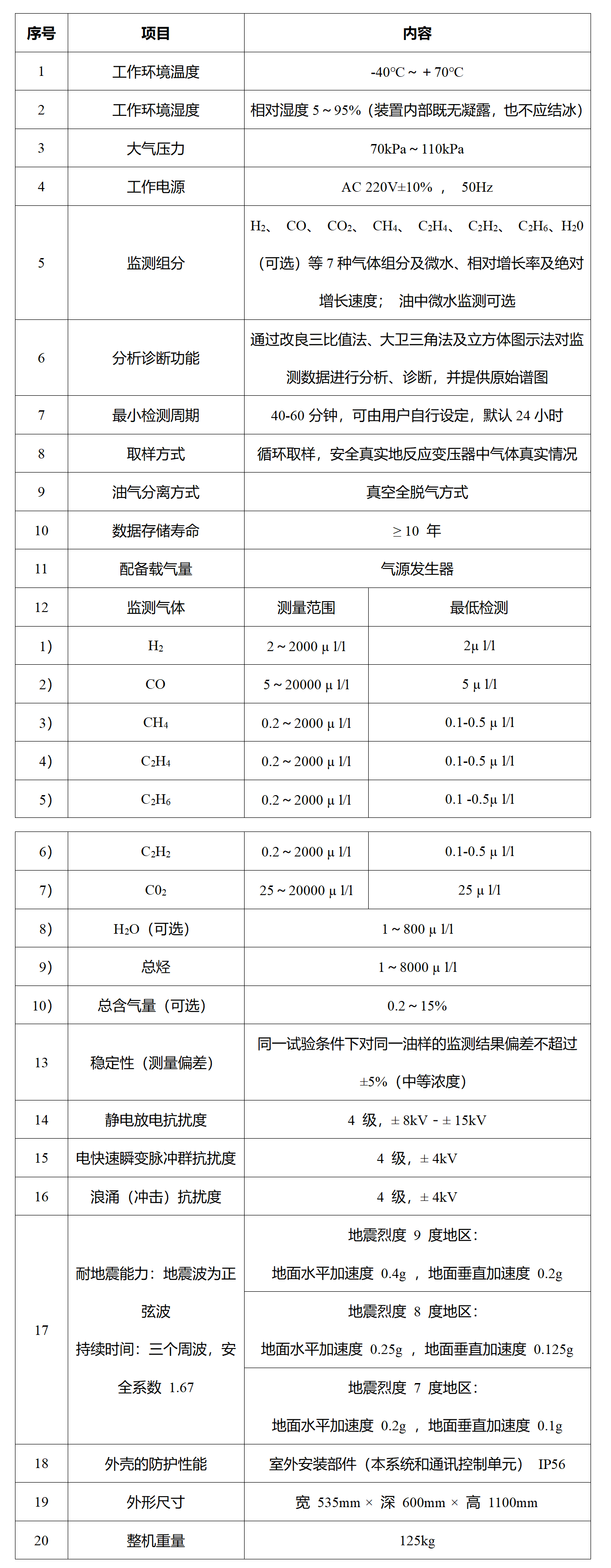 变压器油色谱在线监测系统可实现自动定量循环清洗、进油、油气分离、样品分析,数据处理,实时报警;快速地在线监测变压器等油浸式电力高压设备的油中溶解故障气体的含量及其增长率,并通过故障诊断专家系统早期预报设备故障隐患信息,避免设备事故,减少重大损失,提高设备运行的可靠性。